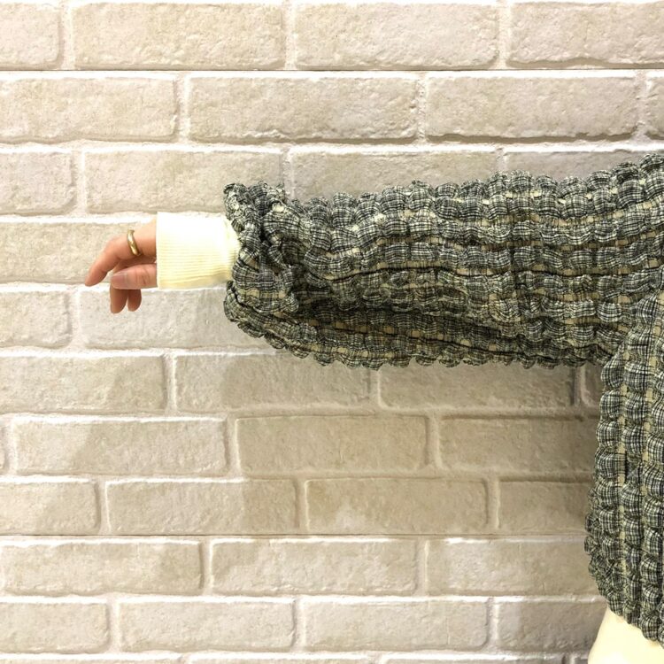 ポコポコと凹凸のあるスクエアシャーリング生地を使用した遊び心のある素材。