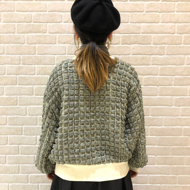 ショート丈なので、スカートやボリュームのあるパンツと相性がいいですよ!