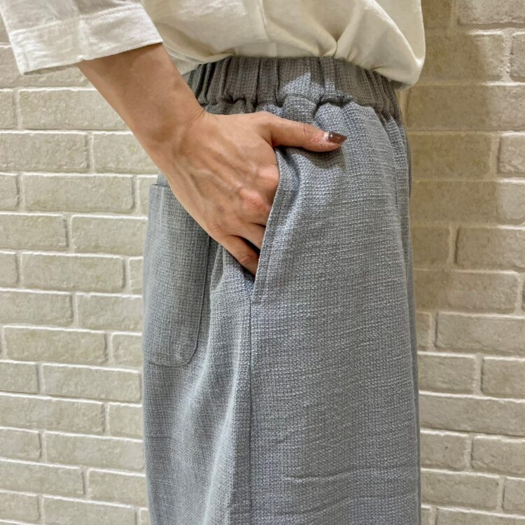 ウエストは、ぐるりとゴム仕様で窮屈さもなく、お洒落を楽しみながらも、デイリーに着まわしやすい仕様です♪