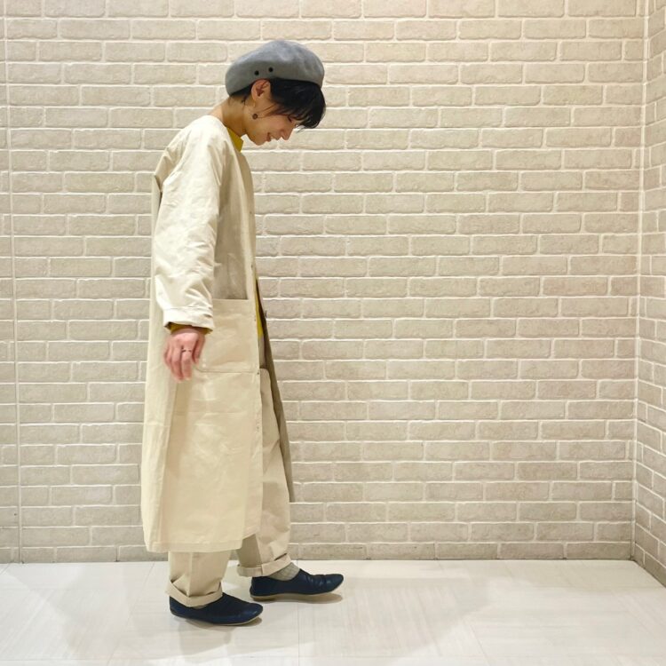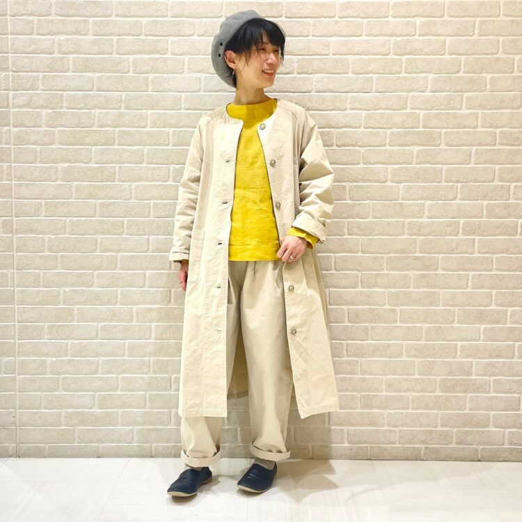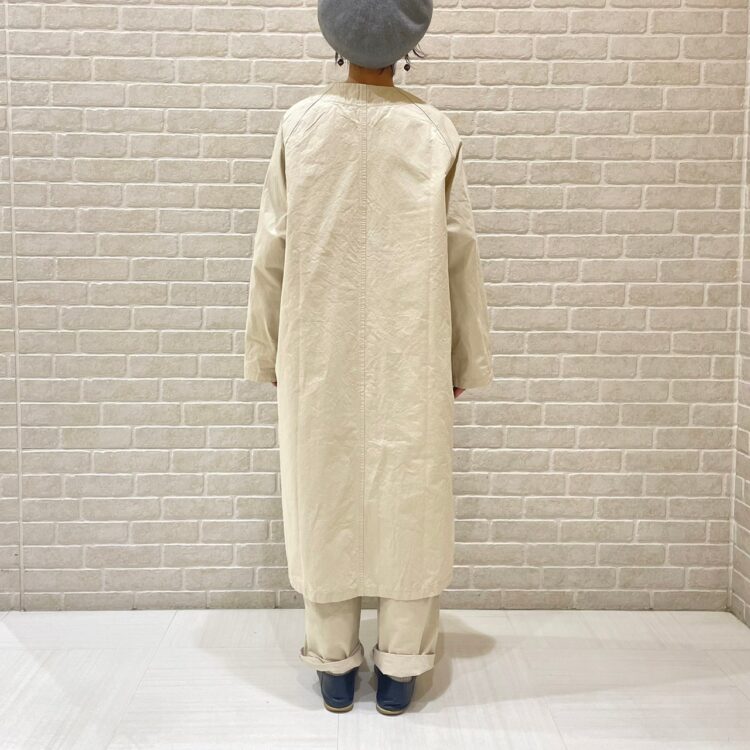 高密度の綿麻素材で、薄手なのにしっかりとした質感のコート。