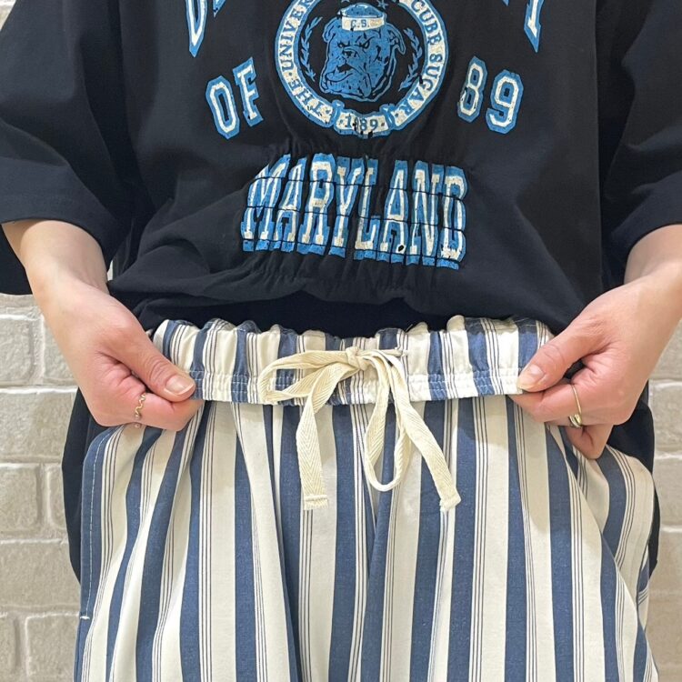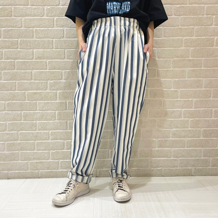 爽やかな雰囲気を出してくれるストライプパンツは、ウエストゴムでラフに着用いただけます◎