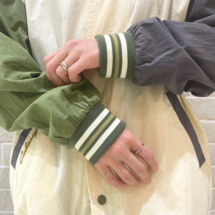 袖のナンバーや、首元と袖、裾のボーダーリブデザイン、さりげなく施されたロゴ刺繍など、カジュアルスタイルが好きな方には、たまらない一着。