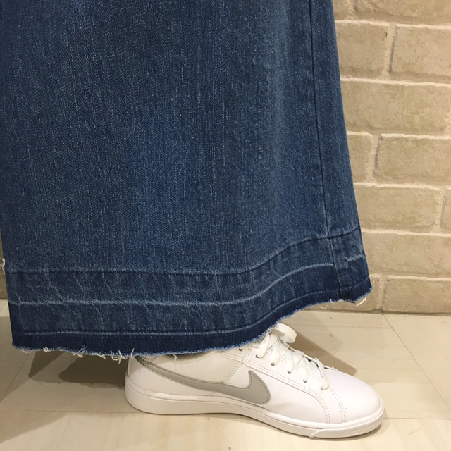 中にタイトなデニムパンツを合わせるのもオススメ☆