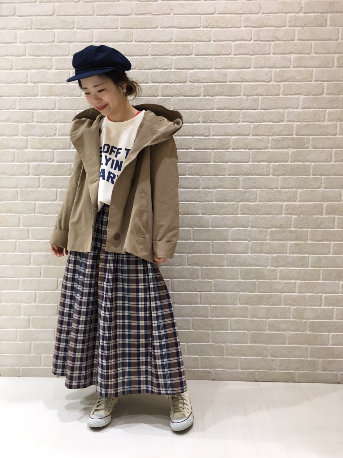 ショート丈のコートには、ボリュームのあるスカートを合わせました。