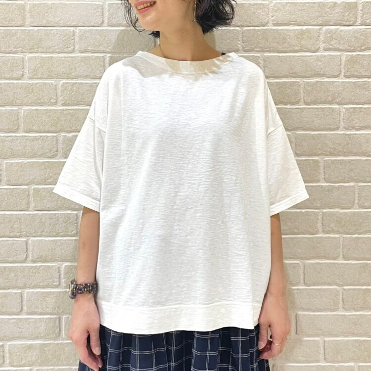 19/バーフィル天竺5分袖ボートネックプルオーバー