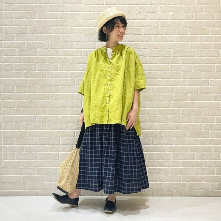 生地に落ち感もあるので、きっちりしすぎず、抜け感のある大人ナチュラルスタイルを楽しめます。