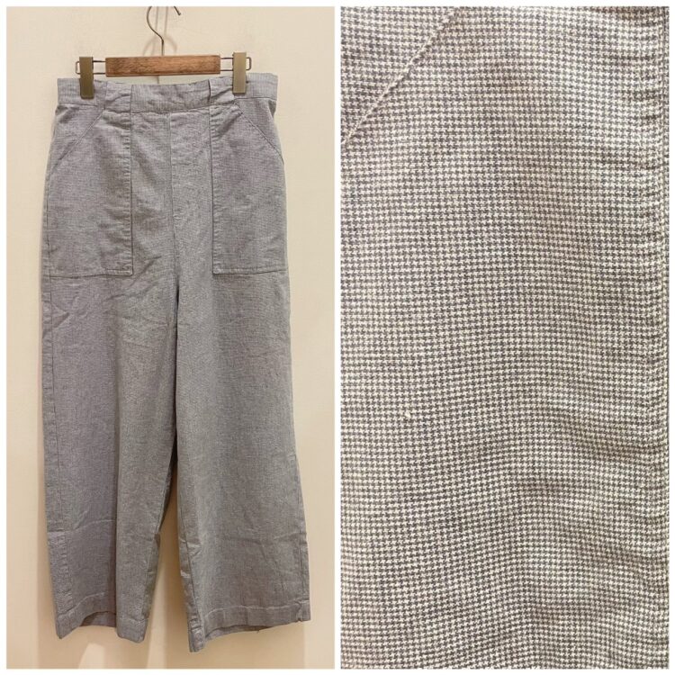 同素材のパンツは、すらっとしたストレートライン。楽チンでありながら、広がりすぎない綺麗なシルエットです。