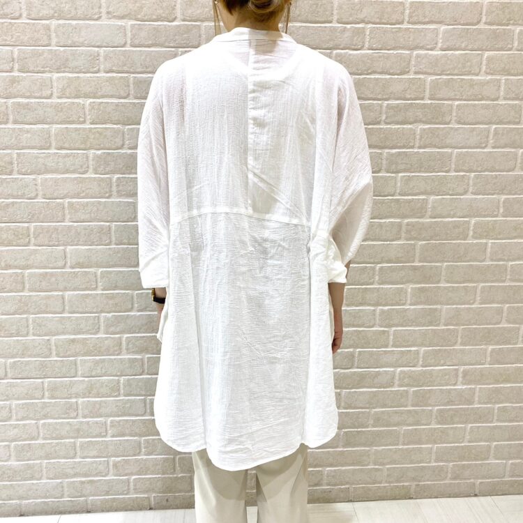 ナチュラルなシワ感のある素材はコットン100%で軽やか