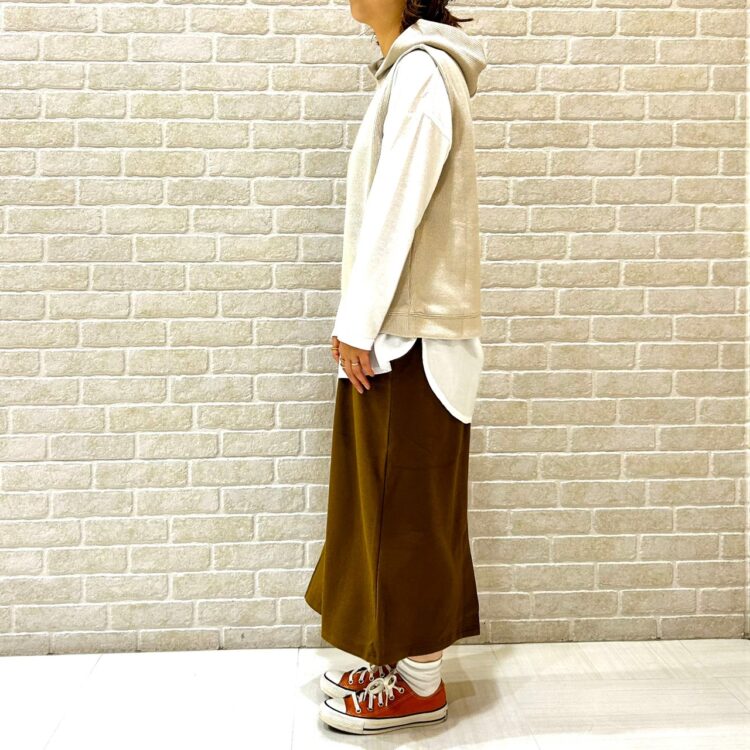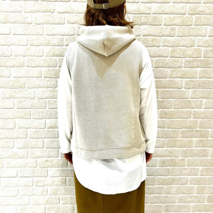寒い時期には、ニットやトレーナーの上に羽織ってもGOODです!