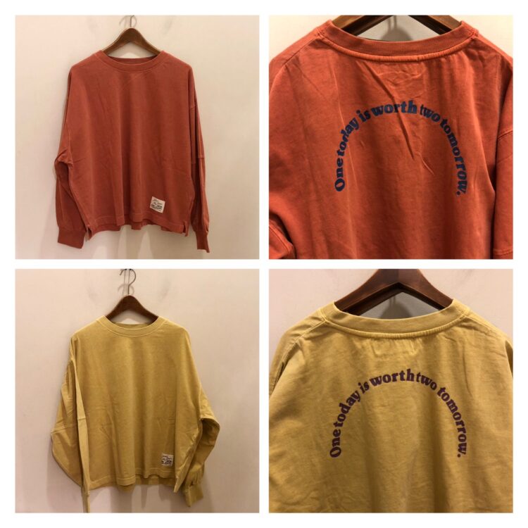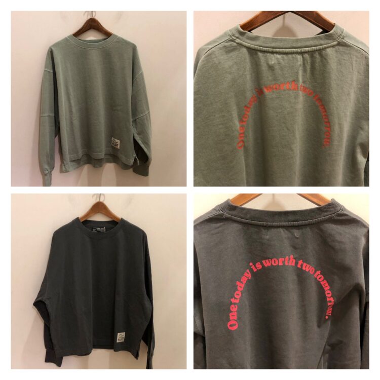 生地はトレーナーより少し薄手で程よい肉厚感のプルオーバー。顔料仕上げ(ピグメント)でヴィンテージ感のある1枚です♪