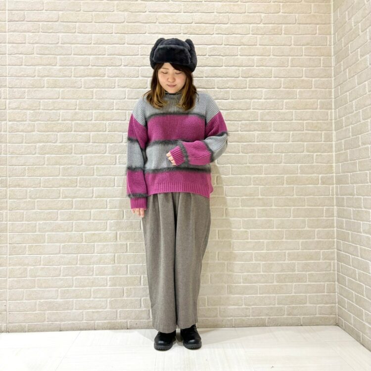 お色はパキッとしてメリハリがついていますが、畦編みで柔らかく、冬らしいほっこり感があります◎