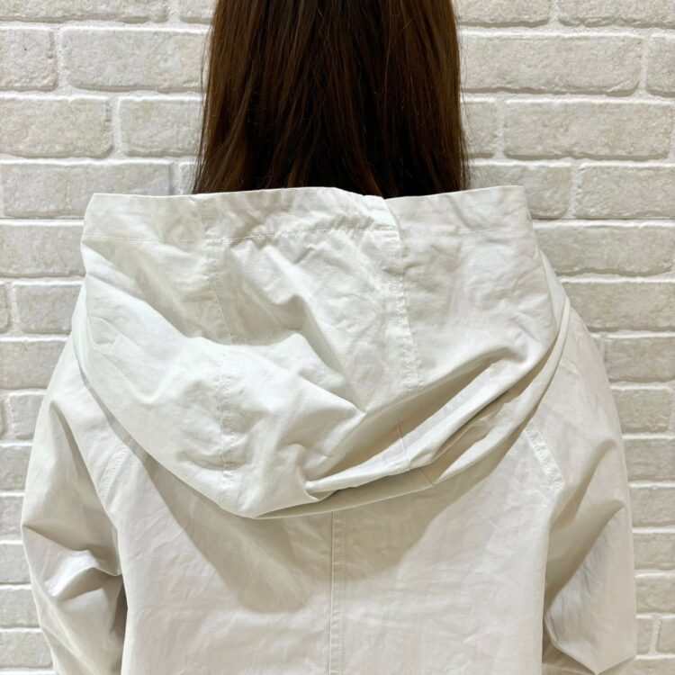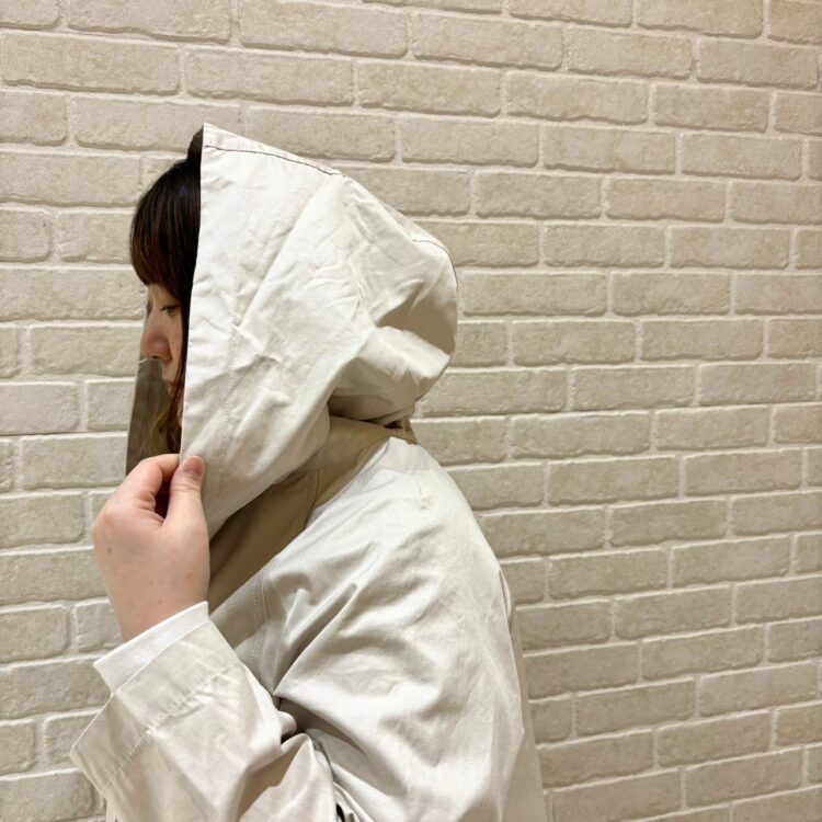 大きめのフードなのでお顔周りにボリュームが出て、小顔効果を生み出してくれます。
