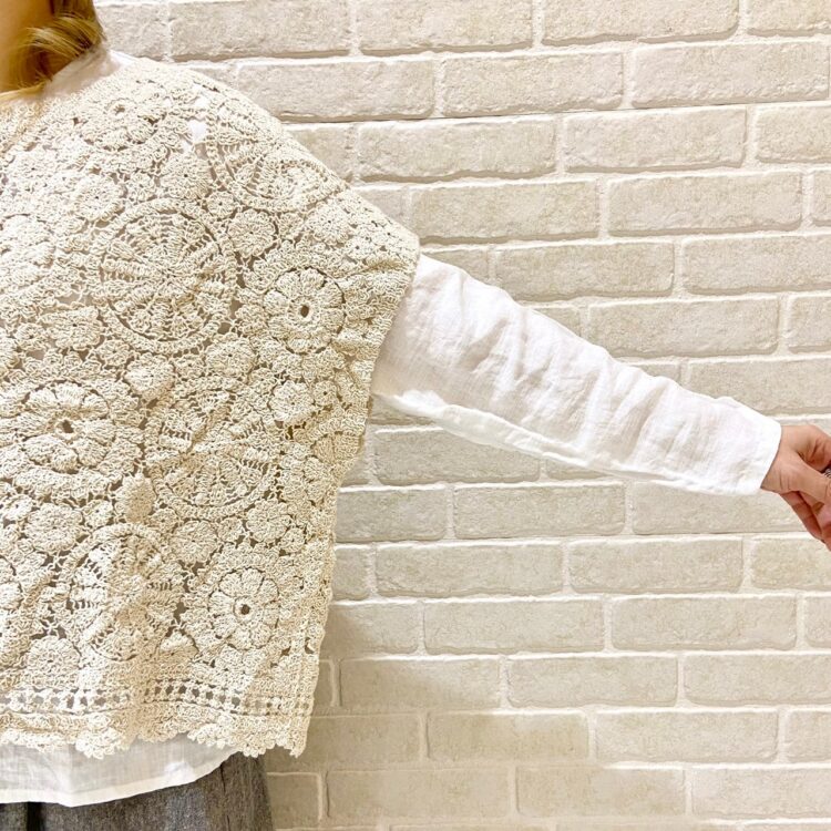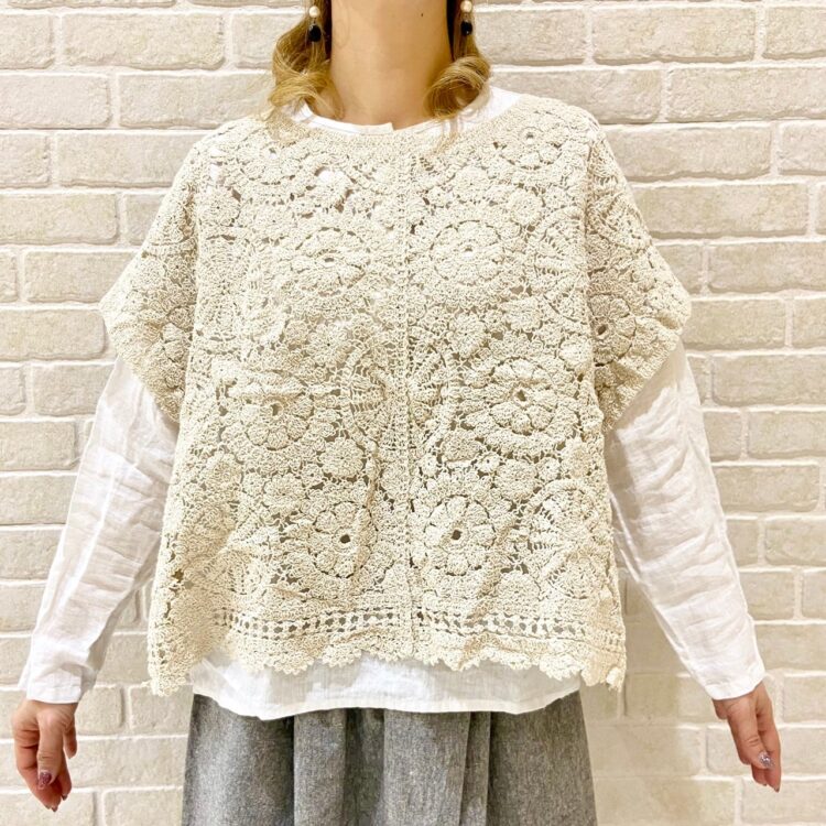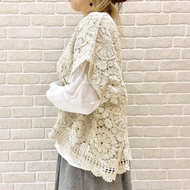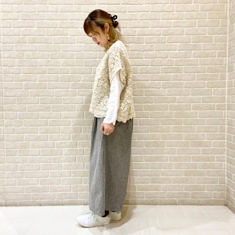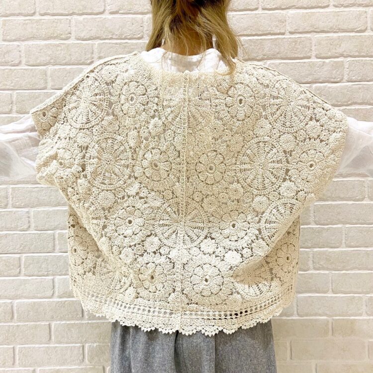 透かし編みニットを羽織って、ナチュラルコーデ♡