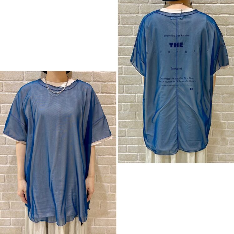 インナーに柄ものを透けさせたり、上にキャミソールなどを重ねたりと、レイヤードスタイルに大活躍してくれます!