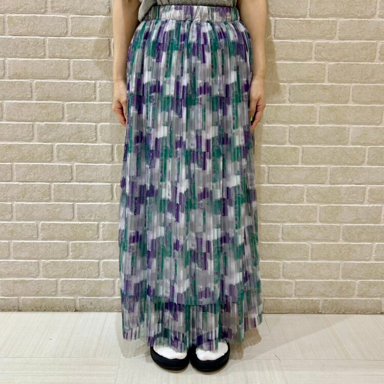 プリーツ加工がしてある柄デザインで、一枚で華やかさもあります!