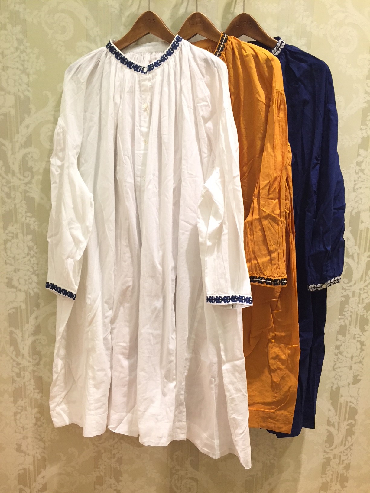 首元と袖口の刺繍がポイント。
