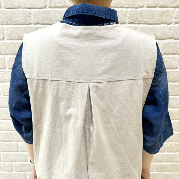 後ろは襟のところがVになっていて、抜け感をつくれます!
