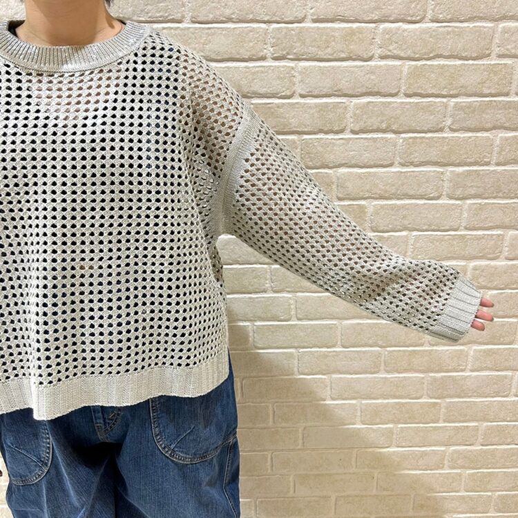 メッシュのプルオーバーには箔が付いていて、所々銀色の箔がキラキラと見えます🌟
