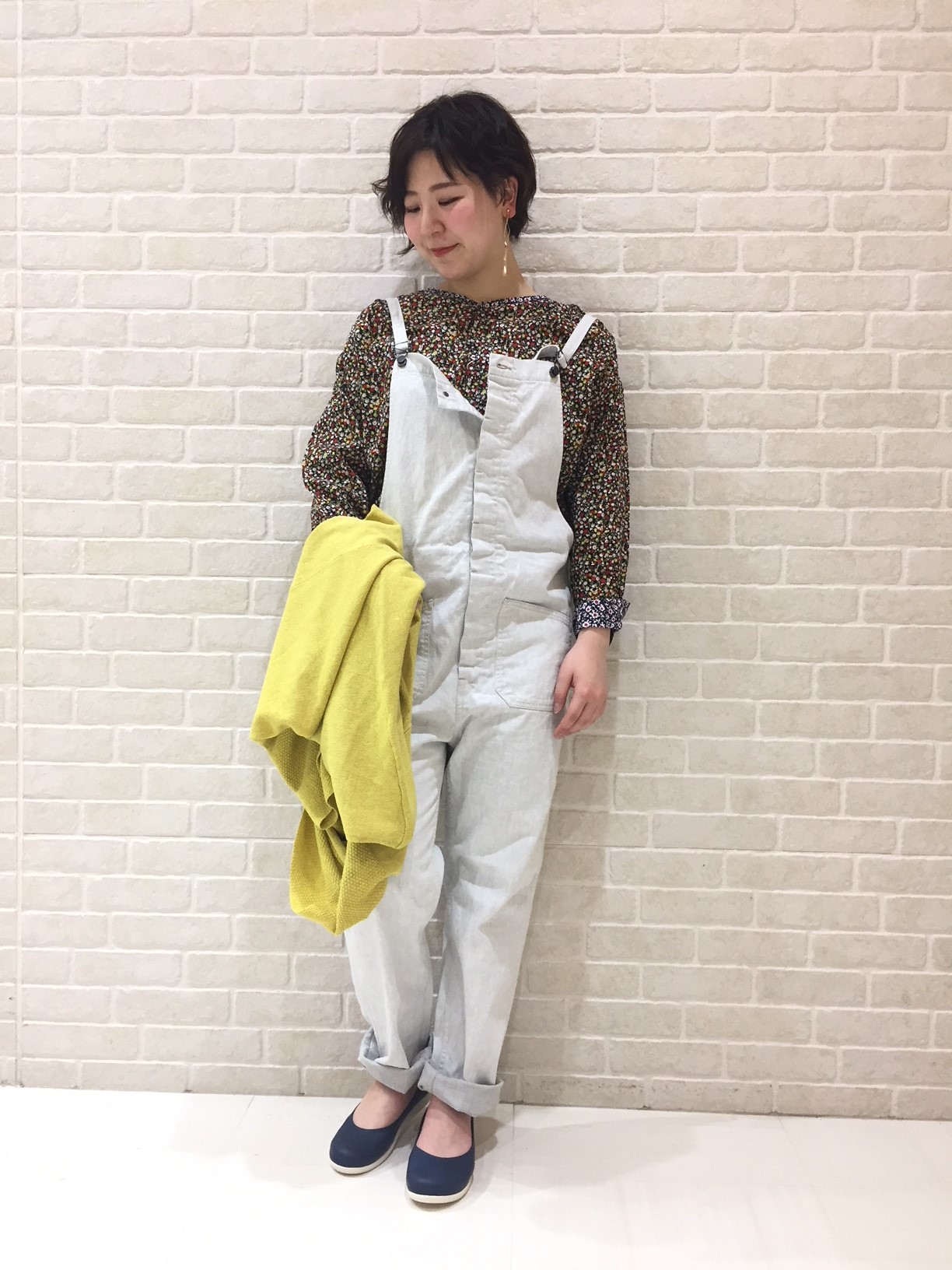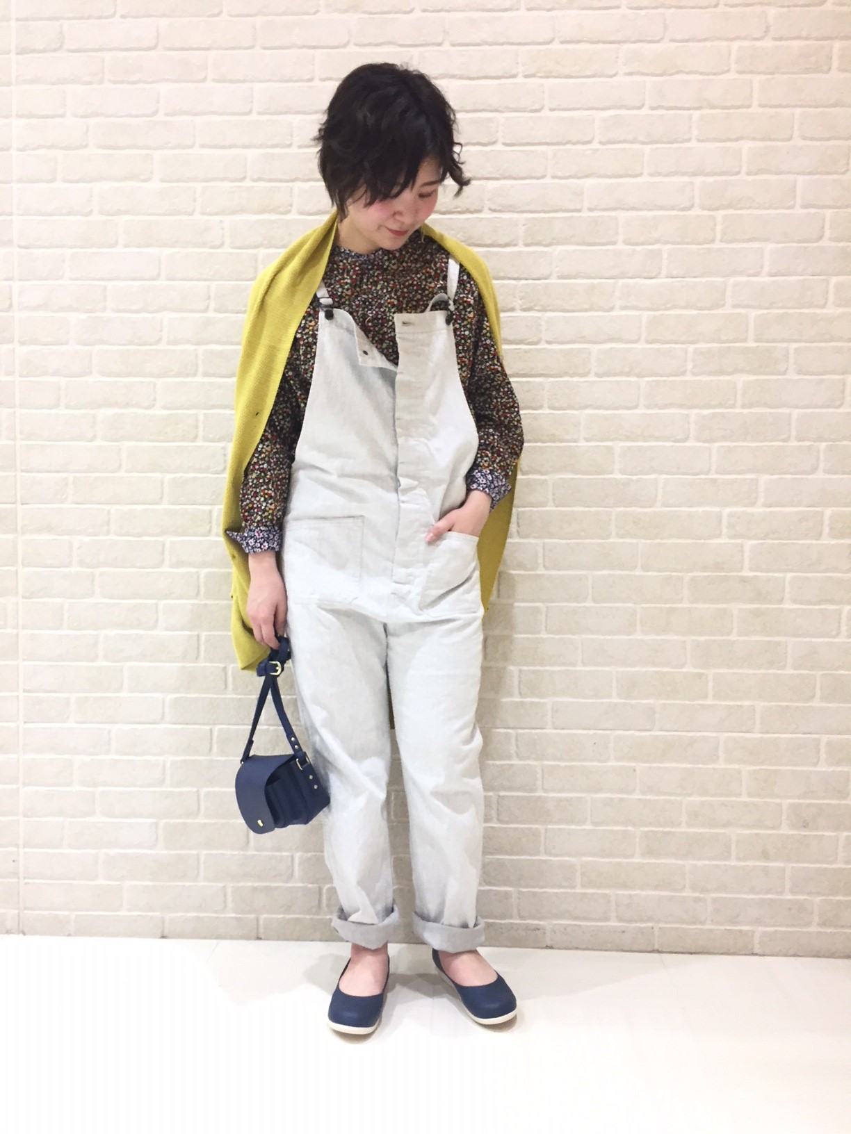 こちらも黄色を差し色に、大人っぽく仕上げたサロペットスタイル!