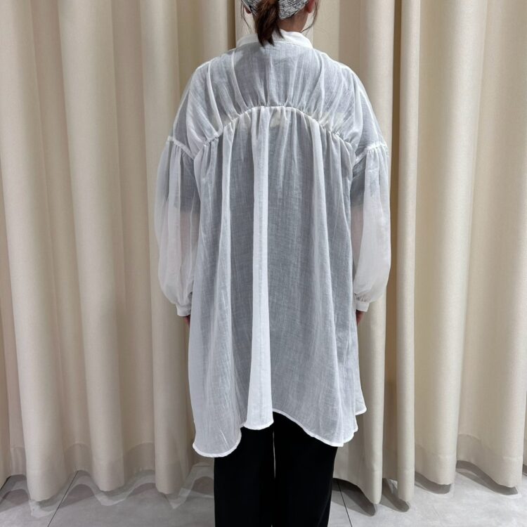 袖と裾にスリットが入っていて抜け感を演出!とても軽くて、シワも付きにくいので取り扱い◎