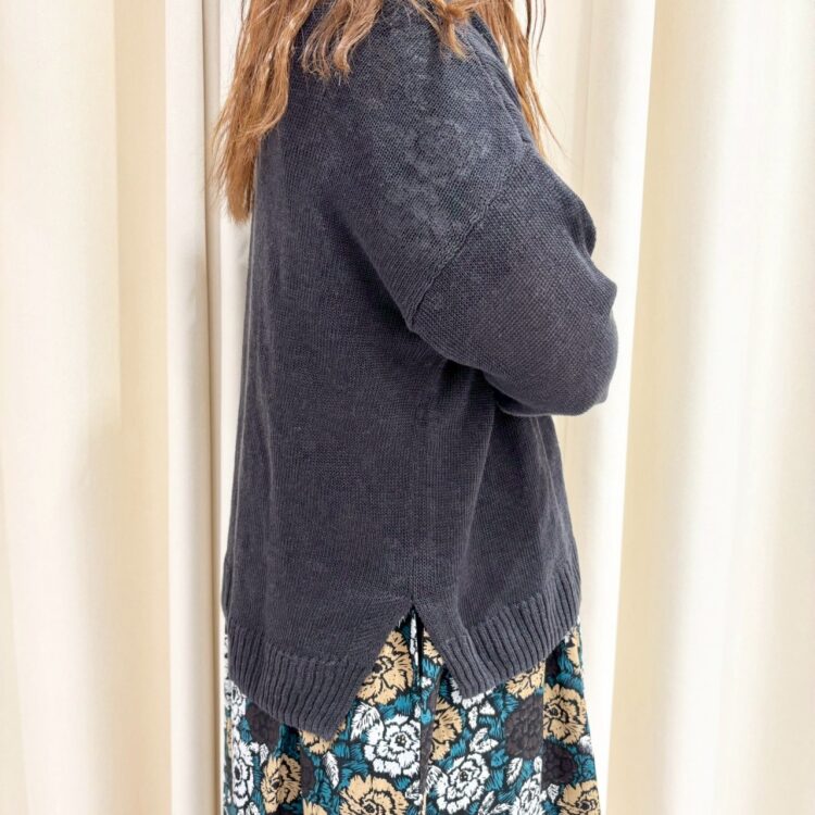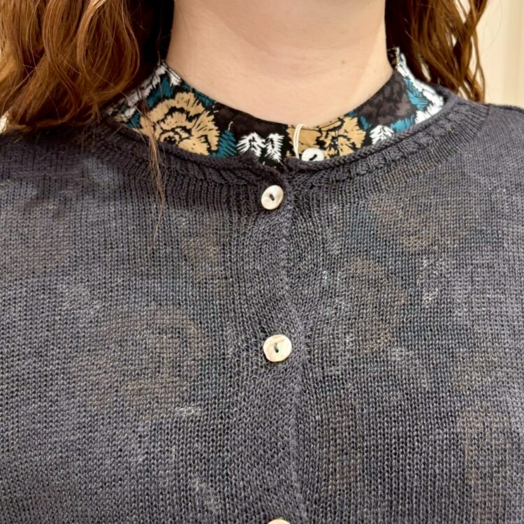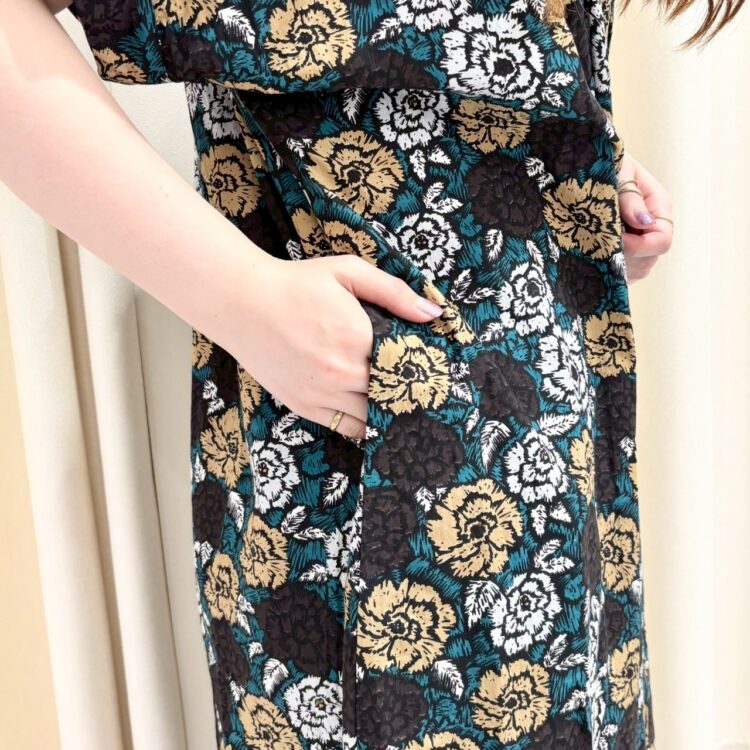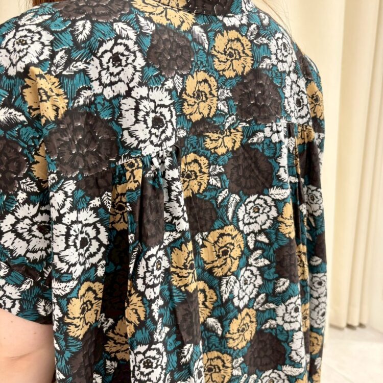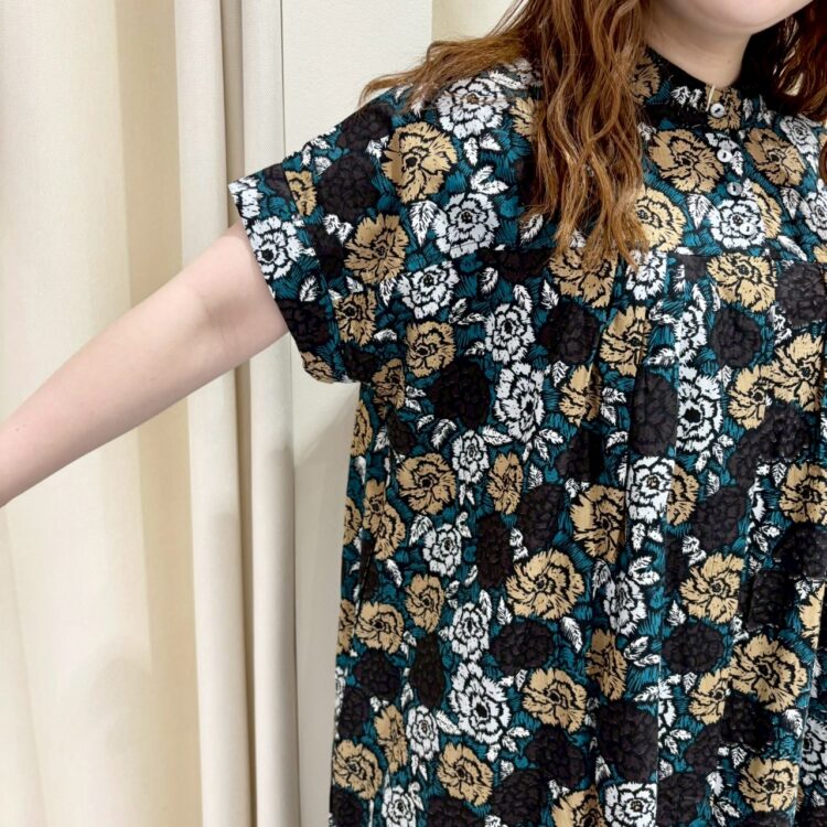 コットンモダールドゥードゥルフラワープリントスタンドカラー2way