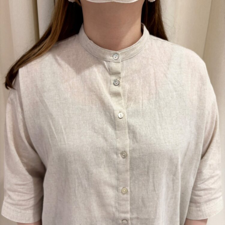 綿麻シャンブレーバンドカラーチュニック