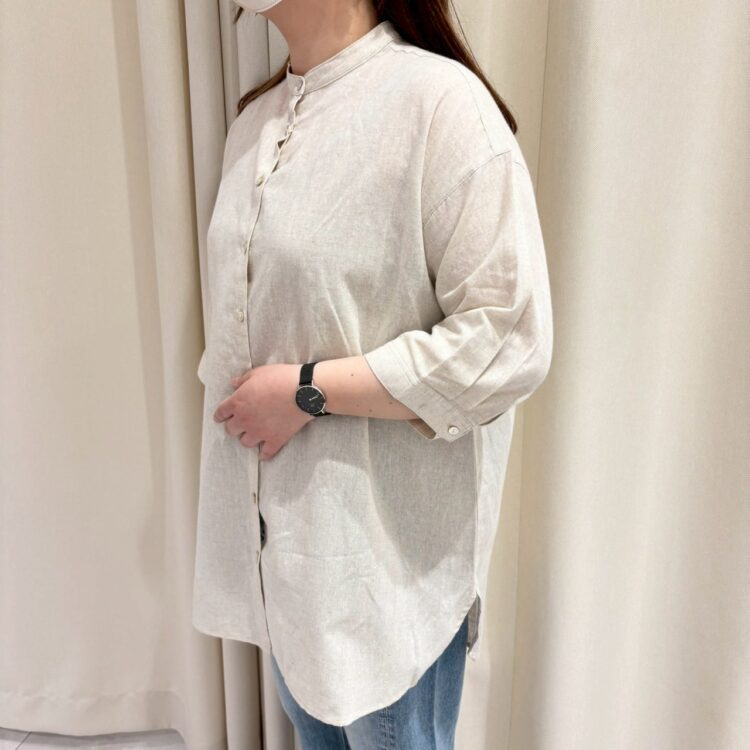 合わせやすいバンドカラーの前開きシャツチュニックが入荷しました♪