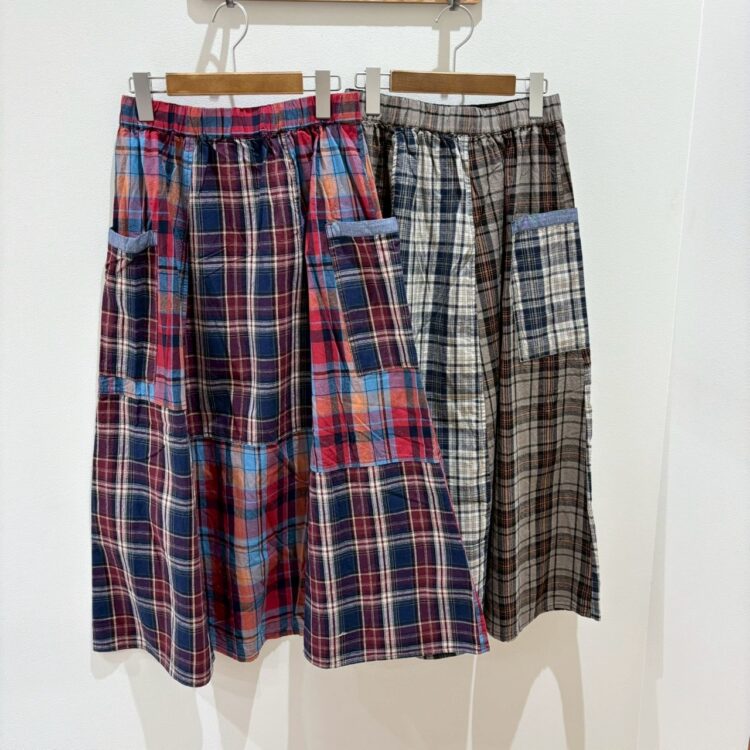 こちらもチェックのパッチワークが可愛いギャザースカートです。