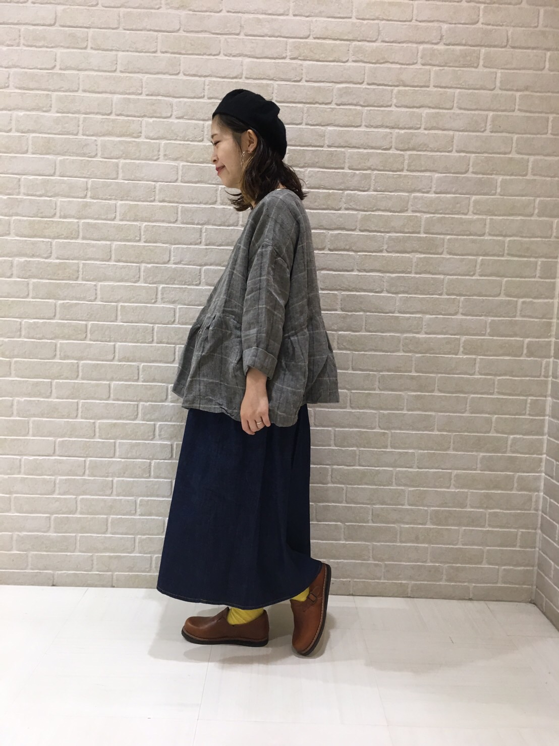 今回は差し色にイエローのインナーを重ね着してチラ見せ♡