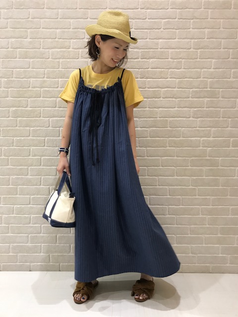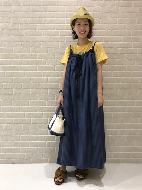 ボリューム感のあるワンピースに、イエローのTシャツで遊びココロをプラス。