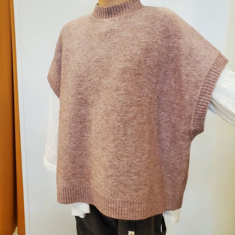 中には、先程のコーデでご紹介したニットベストの色違いを合わせました。