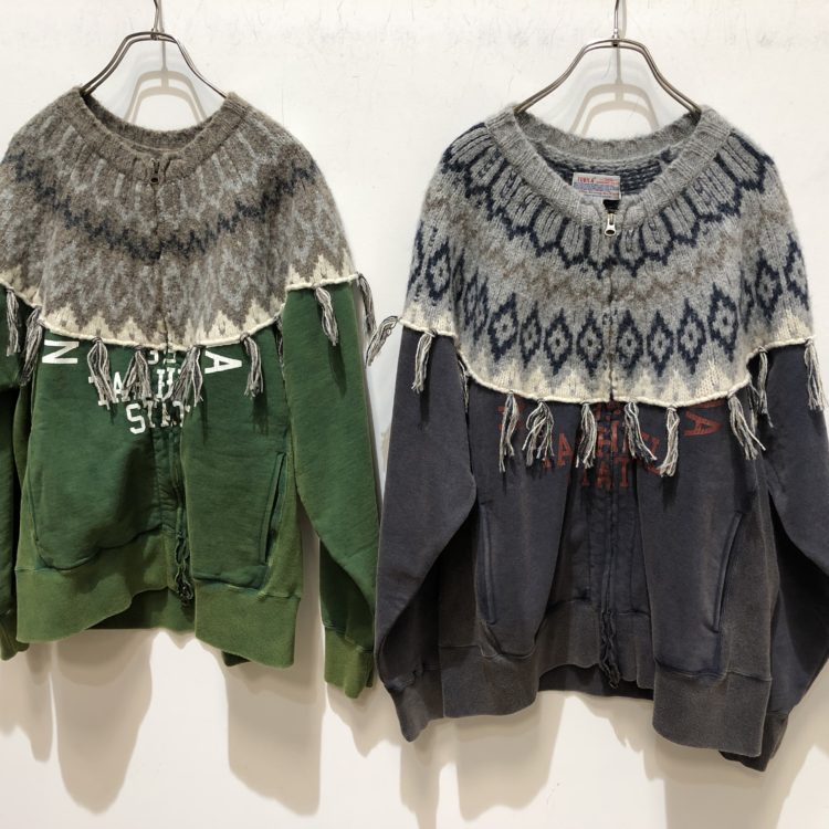 ▼シェットランドウールドッキング裏毛ジップカーディガン