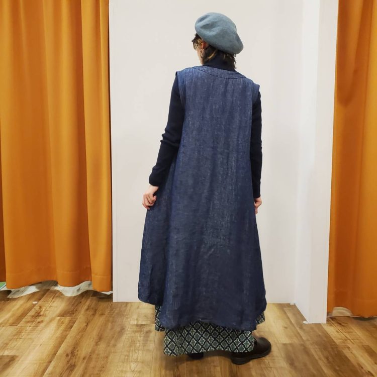デニムではありますが、リネン100%で動くとふわっとなるほど軽やかな生地感。