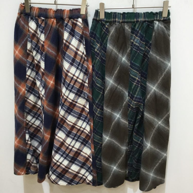 2種類のチェック柄を組み合わせたリメイク風のネルチェックスカート。ボリュームたっぷりとふんわりフレアシルエット。