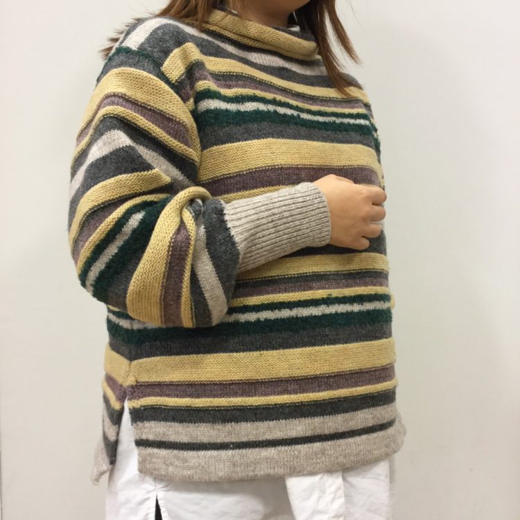 別糸使いマルチボーダーボトルプルオーバー