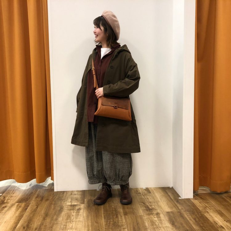 ボトムスは厚すぎず薄すぎずレイヤードしやすい程よい厚みのコットンリネン起毛ボリュームパンツ。