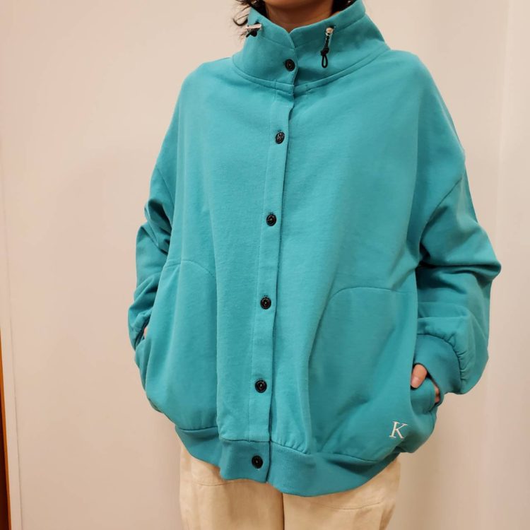【KAKELA】のカーディガンはスタンドネックとサイドの大きなポケットがポイント。