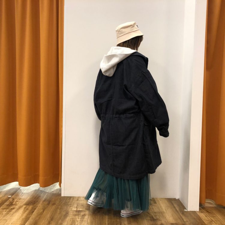 着丈は少し長めでお尻が隠れる長さなので細身のパンツとの相性も良いです◎