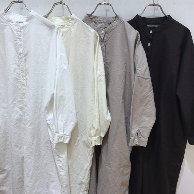 ▽オックス日本製品染スタンドシャツワンピ