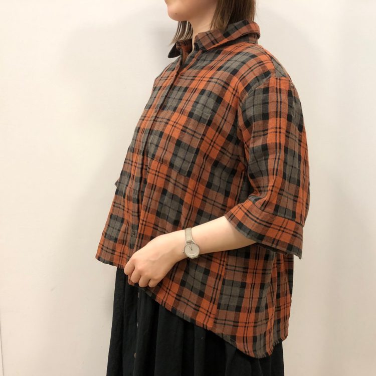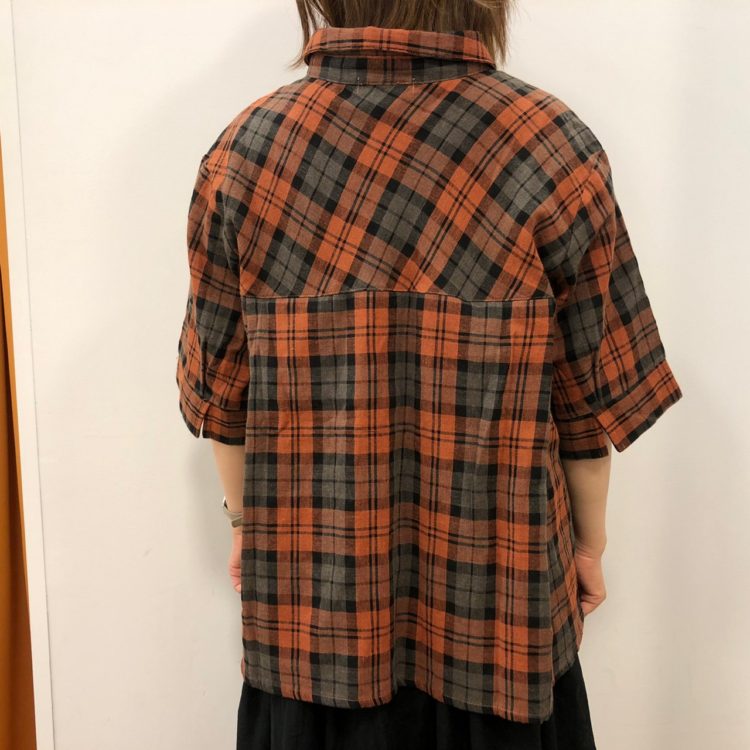 ▼ダブルガーゼチェック背面タックブラウス