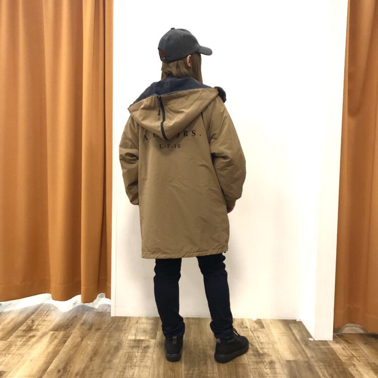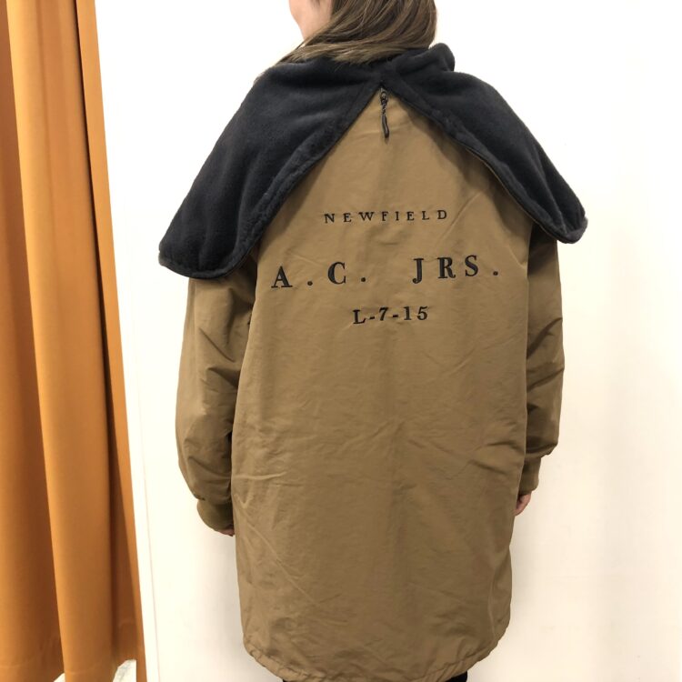 フードのファスナーを開ければエコファーの襟になり印象が変わります。