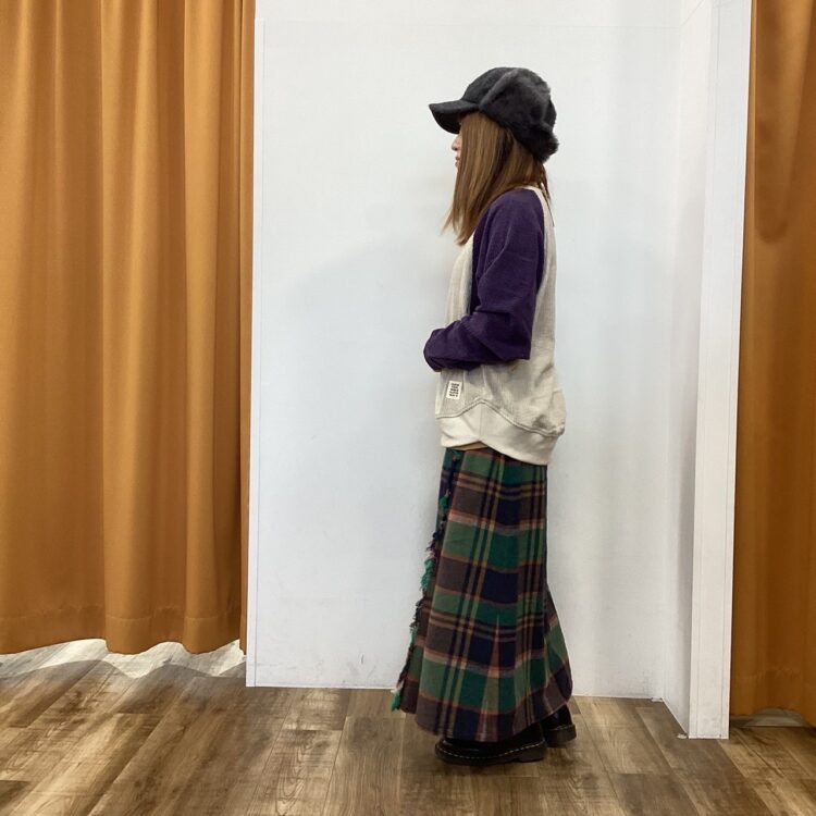 デザインとフリンジディティールのスカートがオシャレ見えしてくれるポイントです!
