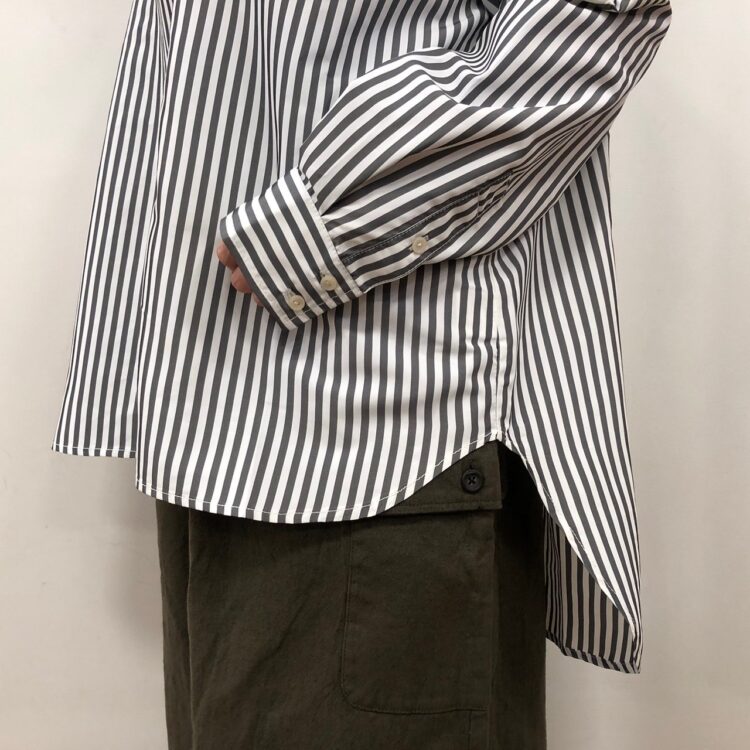 前後差があり後ろが長めの丈感なので細身のボトムとの相性も抜群◎!