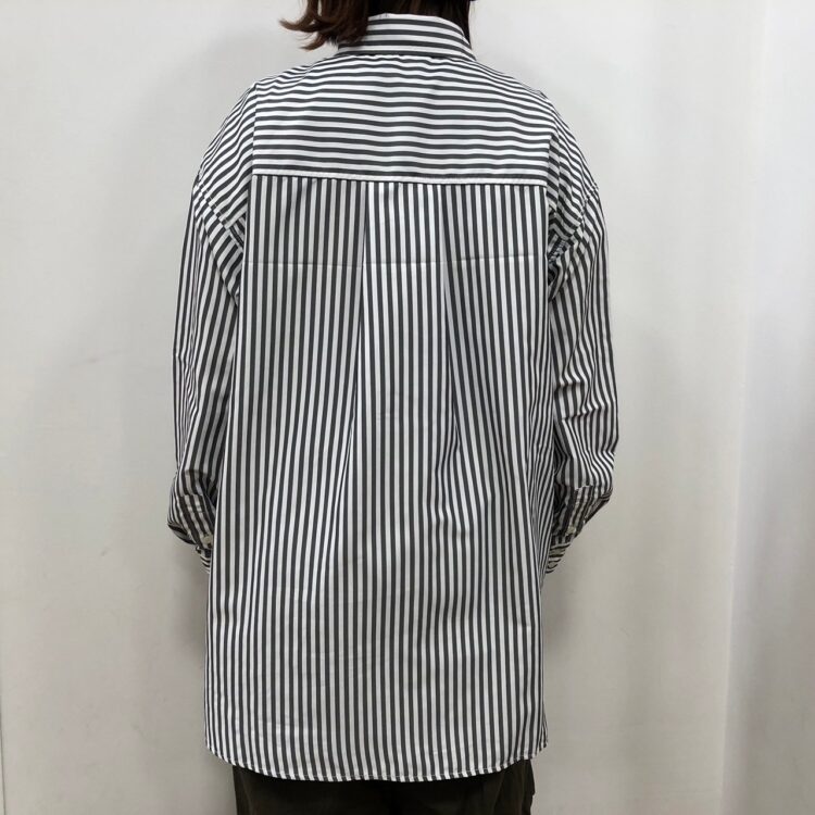 ▼先染ストライプ柄衿付きワイドシャツ
