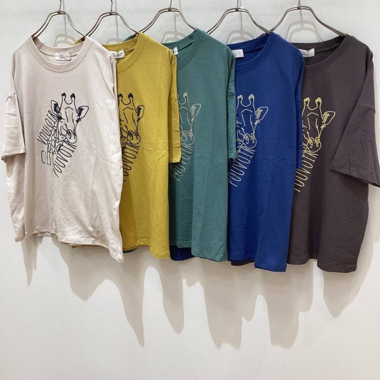 刺繍で施されたキュートなキリンTシャツコーデ♡