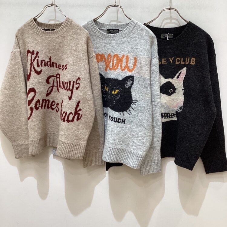 人気のアニマル柄ニットがパワーアップして今年も入荷!(ムスッと猫ちゃんが可愛いです)