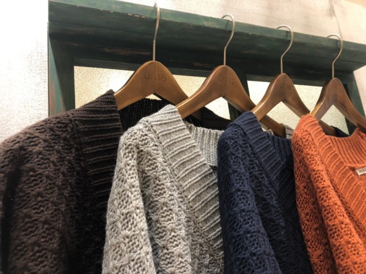ニットカーデはゆったりで着やすく、丈は短めなのでスカートやワイドパンツとの相性も◎