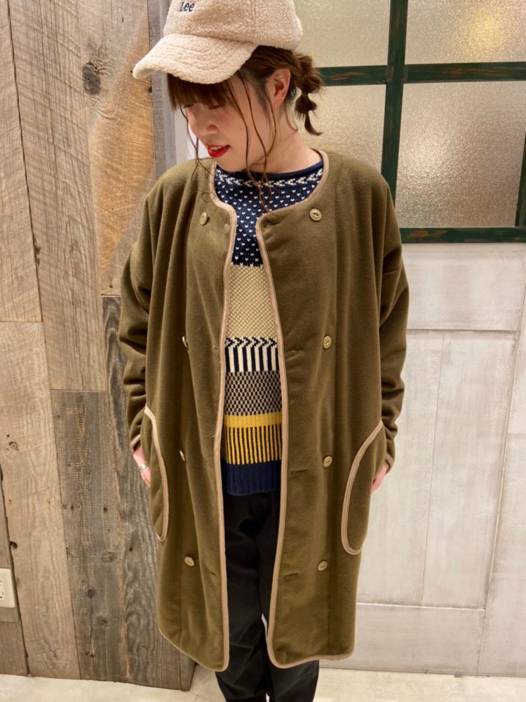 ノーカラーなので、タートルネックのトップスやマフラーとも相性がいいです!