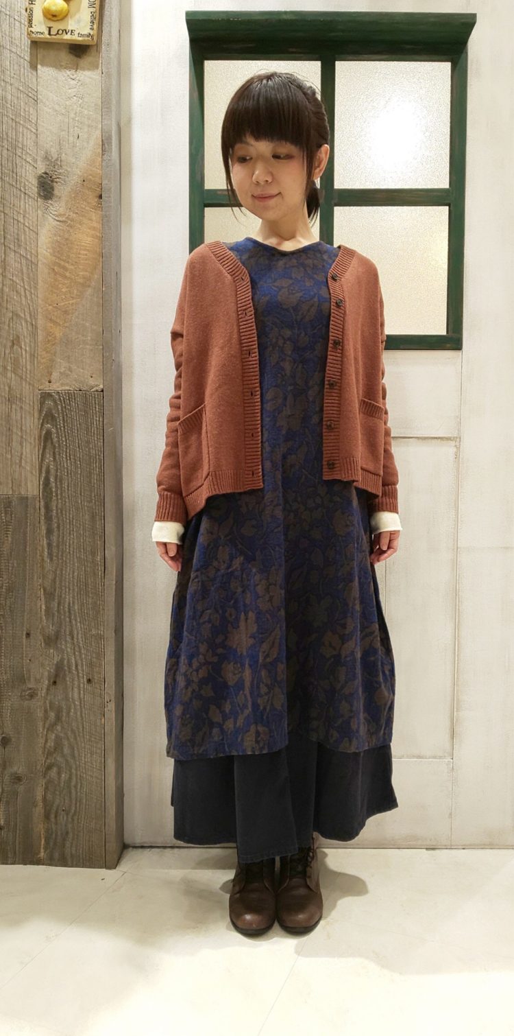 シンプルなワンピースとレイヤードし暖かく着用してみました。