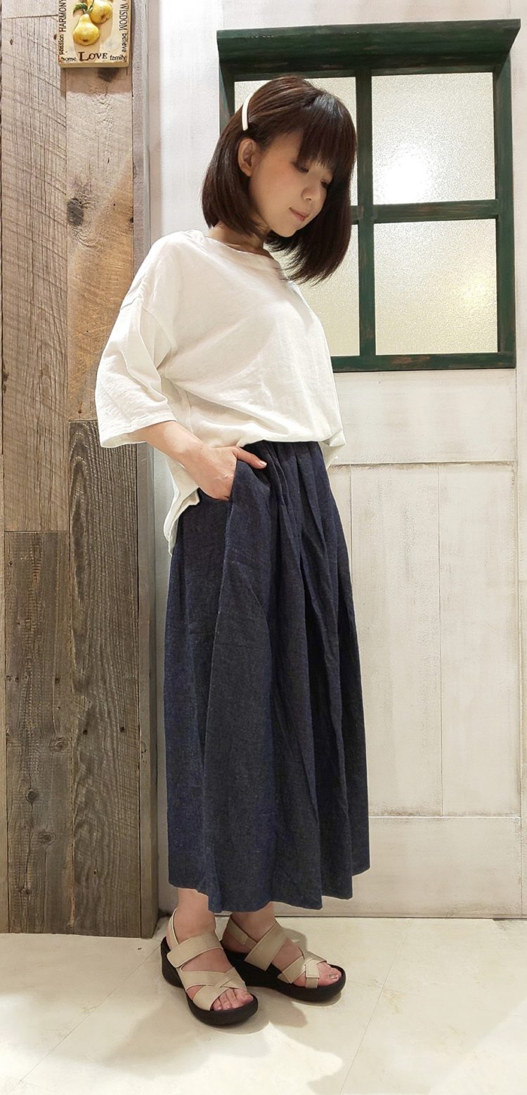 綿麻ですが広がり過ぎず適度な張り感で下半身をカバー。